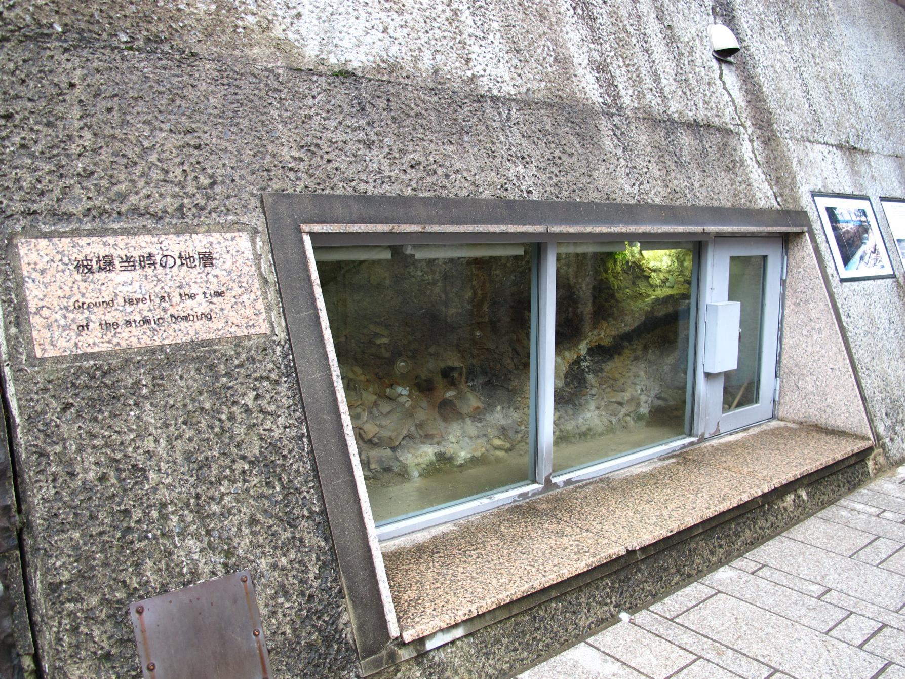 현재, 그 지역에는 낙하 중심지 푯대로서 1968년에 건립된 검정 화강암 비석이 세워져 있고, 공원 내에는 피폭 당시의 지층도 남겨져 있습니다. 원폭으로 인해 파괴된 집의 기와, 벽돌, 3,000도의 고온에 녹아버린 유리 등도 여전히 대량으로 매장되어 있습니다.